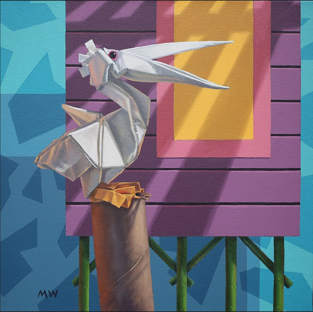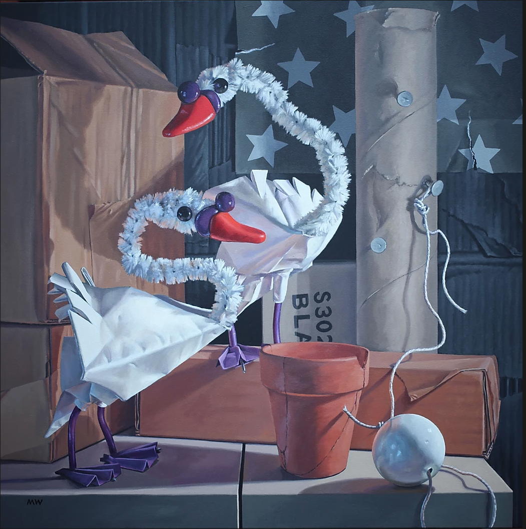 Mark Ward’s paintings all relate to the natural world. Most are developed from experiences of landscapes and creatures locally or in more exotic climes. Just as East Anglian artists from Gainsborough to Grayson Perry have used found and perceived low art materials, so does Mark interpret nature. He constructs stage sets in his Suffolk studio, using paper, string, clay and all sorts of rescued items. These are closely observed and painted using acrylic. The sets are lit to create drama and emphasise the nature of the construction materials. Mark has exhibited in London, New York, Italy and across England.